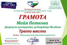 "Българска душа на святата земя", Израел, 2022 г. Сред призьорите и се децата от Двореца на културата гр.Твърдица! Културното събитие премина под егидата на Цвика Брот - кмет на гр. Бат Ям – Израел. Организатор е Арт салон „Сели“, съвместно с общество „Димчо Дебелянов“. Фестивалът бе осъществен със съдействието на фондация „Незабравимата България.“